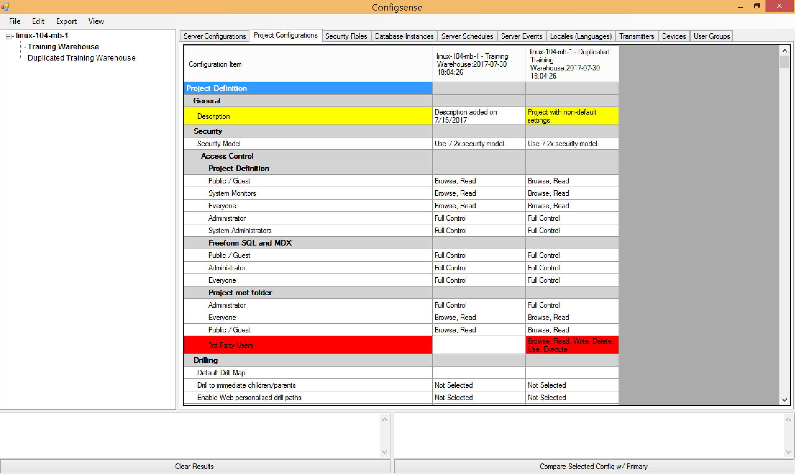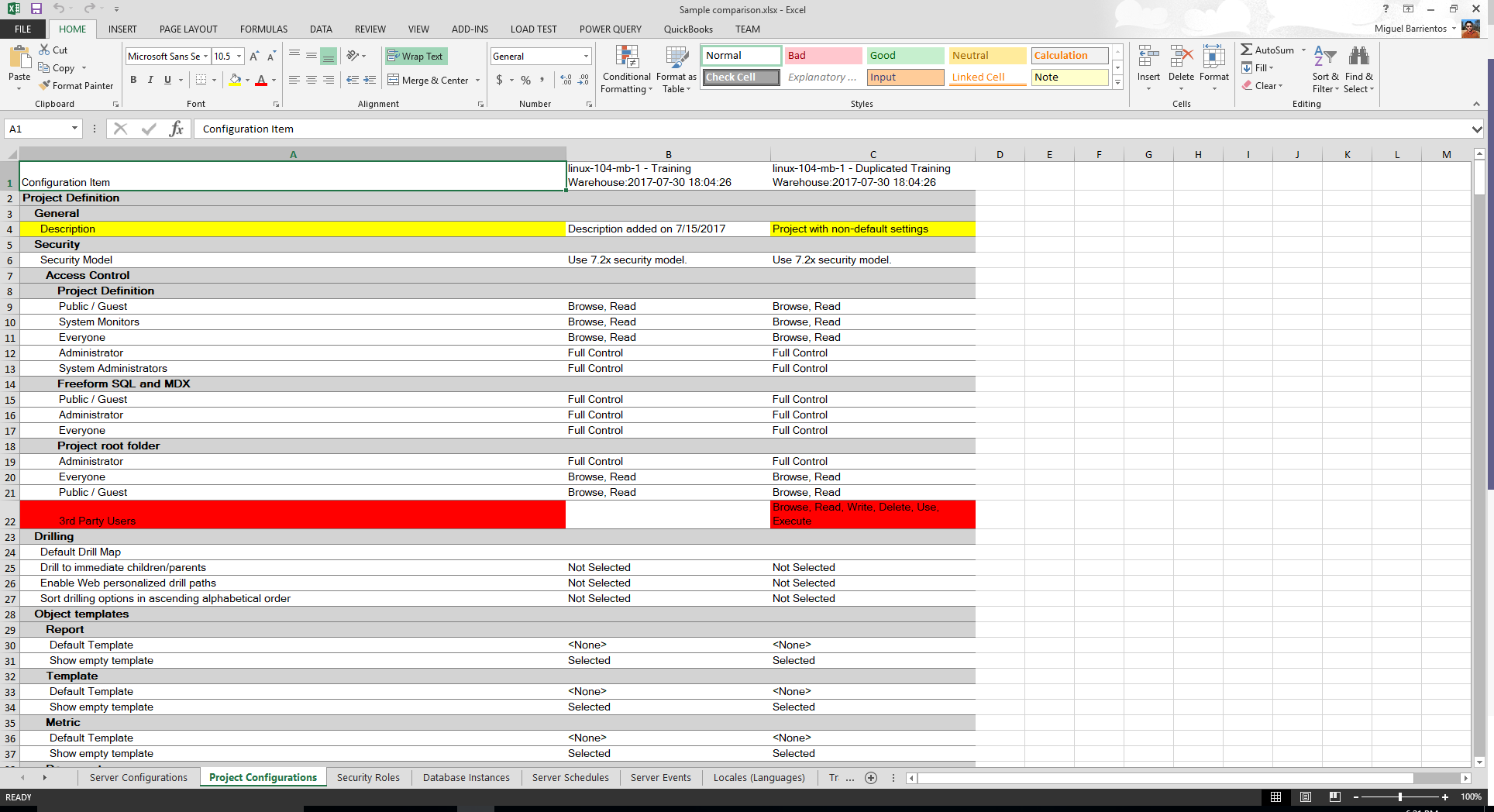 Compare environments easilyConfigsense reads settings from multiple environments and highlights all differences. Export full configuration details to Excel.
